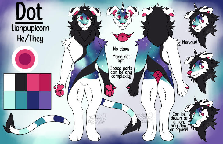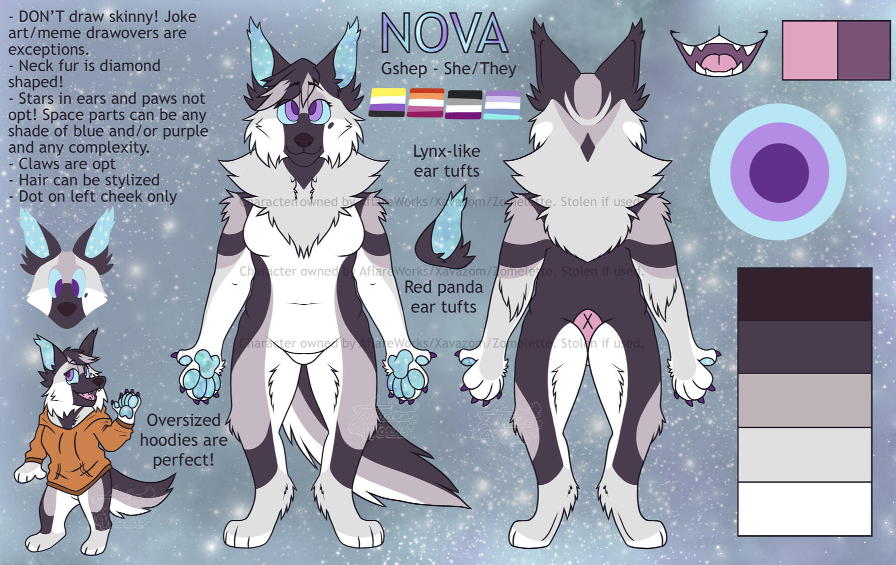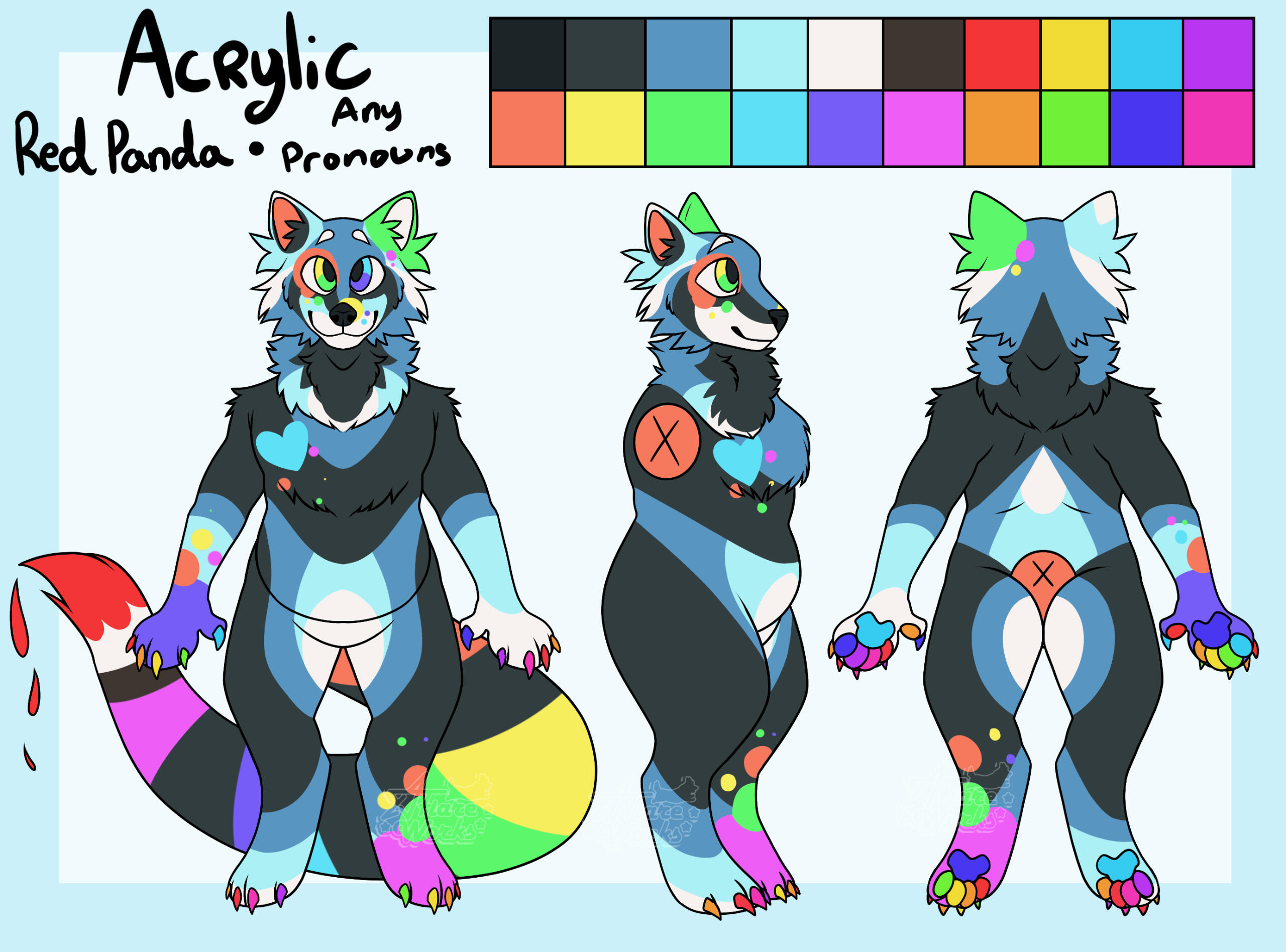 Best for a character's first ever ref sheet! Includes a fullbody front view, a fullbody back view, a mouth view, and a paw/hand view!Asymmetrical premade character - $105