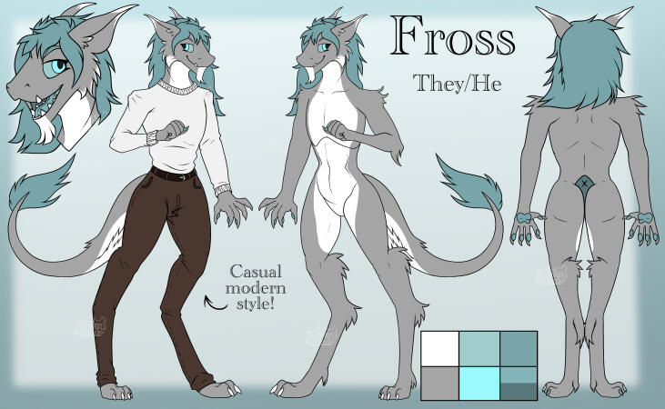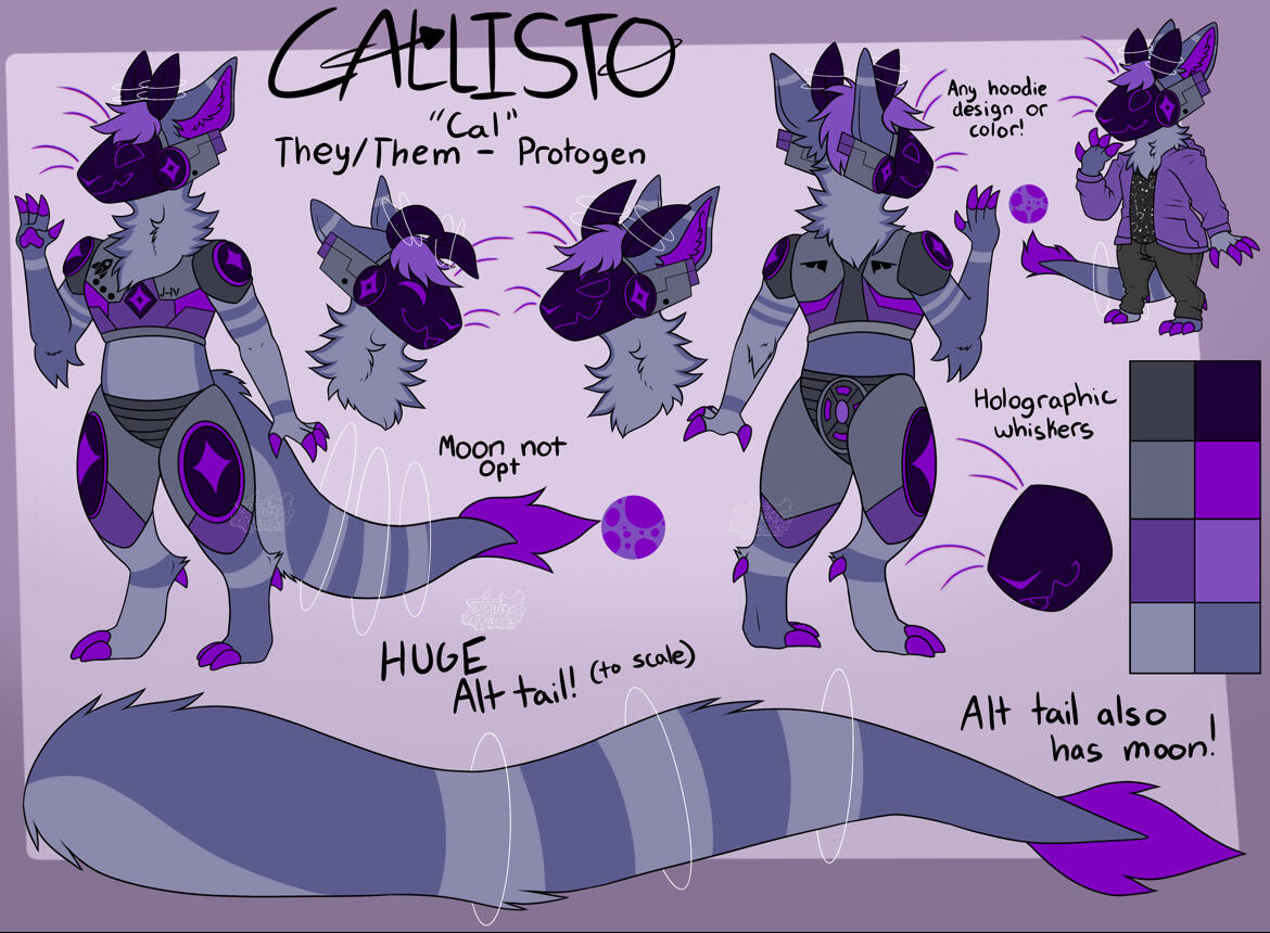 Best for giving your character a sheet with all the bells and whistles! Includes a fullbody front view, a fullbody back view, a headshot view, 2 outfit chibis, and a tail view!Asymmetrical premade character - $170